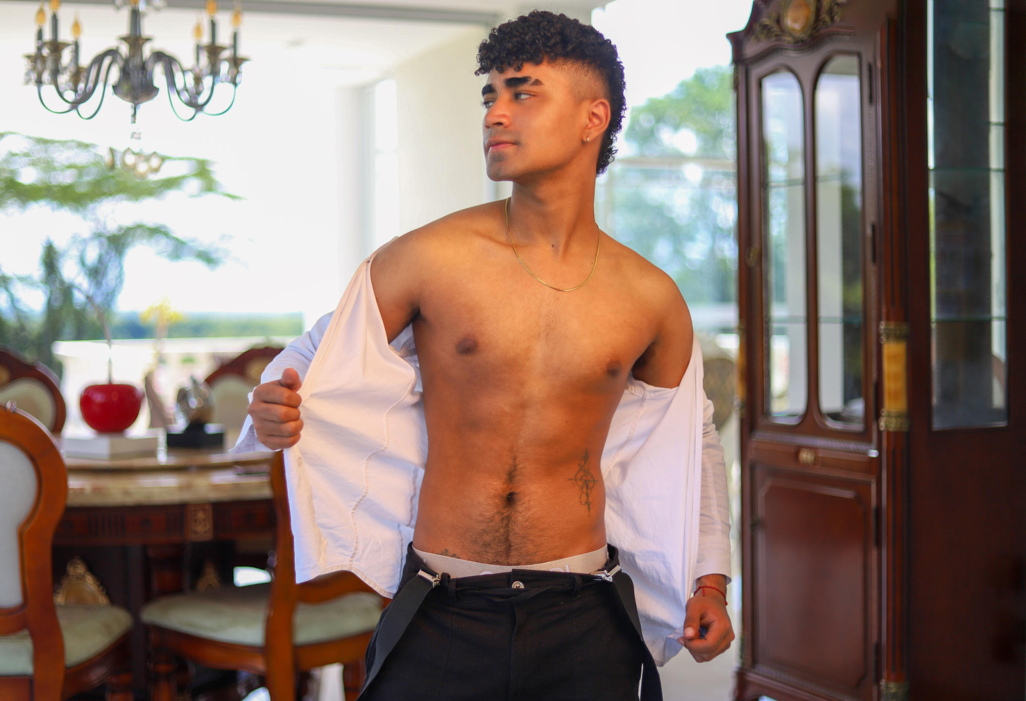 Soy un chico latino de piel morena y contextura delgada, con una figura atlética que refleja mi energía y disciplina. Mis ojos cafés transmiten intensidad y calidez al mismo tiempo, y mi rostro perfilado resalta mis facciones definidas. Mi cabello oscuro y ondulado le da un toque natural y auténtico a mi estilo, y mi sonrisa... bueno, dicen que tiene el poder de enamorar.