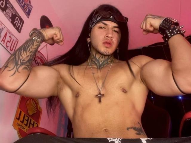 Il a un physique athlétique, bien défini, avec des bras musclés et un torse tonique. Il a des tatouages visibles sur son cou (un motif tribal qui s'étend jusqu'à sa poitrine), sur son bras et sur son bas-ventre. Il porte une casquette noire, des boucles d'oreilles - un anneau et un pendentif - un piercing au nez et un piercing au mamelon. Il porte également une chaîne avec un pendentif en forme de croix. Son expression est sérieuse et confiante, avec un regard intense et des lèvres définies, projetant une image forte et dominante..